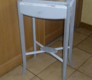 Petite table 1930, relookée et vieillie Hauteur 71 cm Plateau 37 x 25 cm Ouverture sur le dessus pour vide-poche Table ancienne transformée au gout du jour