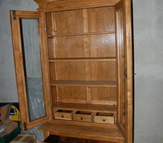 Meuble vitrine en deux parties. Coffre L 105 x H 50 x P 50 cm, avec grand tiroir. Vitrine : L 100 x H 1,50 x P 30 cm avec trois tiroir Très bon état.