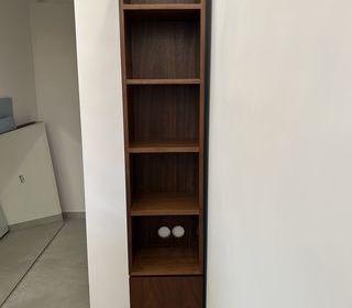 Colonne de rangement en bois, avec étagères et petit placard en bas. Dimensions : hauteur 2.03m , largeur 34cm, profondeur 30cm En très bon état Remise en mains propres uniqueme