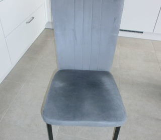Lot acheté en 2024 de 6 chaises en velours gris et entretenues par des housses. Les chaises ont le dossier indépendant de l'assise ce qui facilite le transport. Les pieds sont e