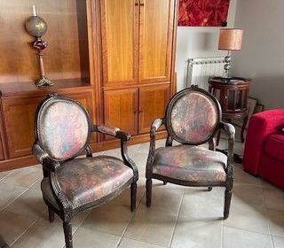 Dimensions : Longueur : 65 cm Largeur : 55 cm Hauteur de l'assise : 42 cm Hauteur totale : 90 cm Acajou et Tissu Sièges fabriqués au début du siècle dernier. La tap