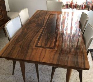 Je vends une table en noyer avec 2 abattant très bon état plus 2 chaises paillées Règlement en espèces uniquement retrait à la porte