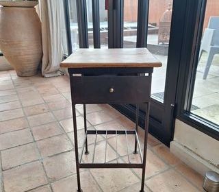 2 tables de nuit fer forgé et plateau bois bon état a venir retirer sur place