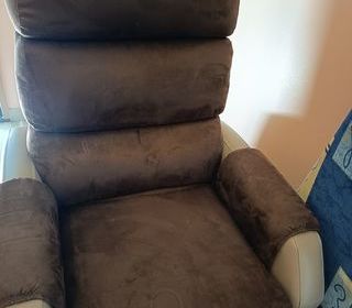 Fauteuil releveur état neuf. Électrique commande accessible avec rangement, 3 moteurs système de basculement vers l'arrière position relax .Toute la partie en microfibre chocolat e