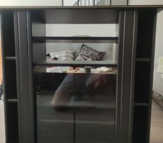 Meuble TV noir P42 L90 H87. Portes vitrées Emplacement pour mettre des accessoires Bon état