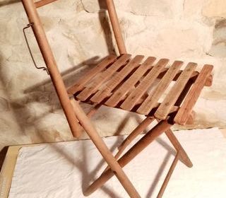 Les pêcheurs ont presque disparus, il nous reste leurs sièges pliants. Celle-ci est le mariage de l'acier et du bois, elle est très légère mais solide car en bon état. Elle atten