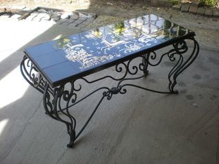 Table basse fer forgé. Bon état, retouche peinture à prévoir. Tablette amovible pouvant être changée Hors tout1120x560x550, Tablette 1050x470 A prendre sur place, ou livrable