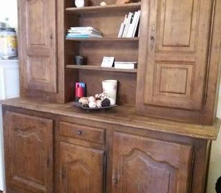 Bonjour, Je vends un bahut 100% chêne massif en 2 parties. 2m environ de hauteur-1m90 de longueur-54 cm de profondeur. prix : 250 euros et les 4 chaises à 20 euros. possibi