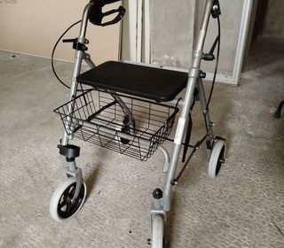 Déambulateur pliable 4 roues et ultraléger pour les personnes ayant des problèmes de mobilité. Il a un siège pour se reposer et le guidon est ergonomique et réglable en hauteur. A
