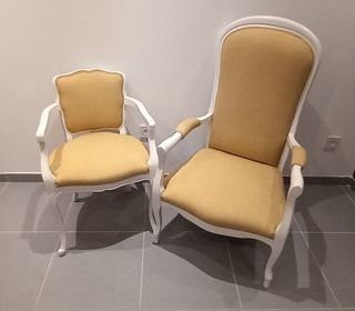 Lot deux fauteuils style Voltaire. Rénové chez tapissier pro Peint blanc et tissus coton aspect lin beige. Lit 2 pour 320e