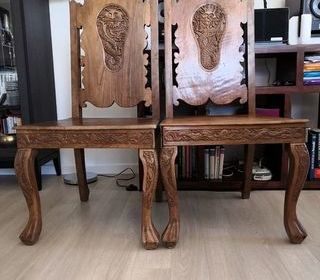 2 Chaises Indiennes en Noyer du Radjasthan en excellent état , sculpture "Dragon"