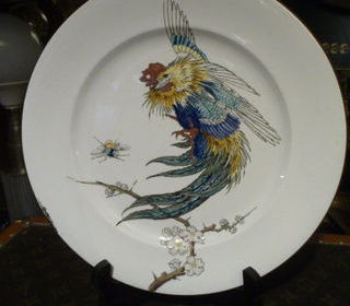 paire d'assiettes Jules Vieillard, série botanique xxéme .Assiettes décorée aux oiseaux en relief, En haut, à droite, une signature japonisante. voir photo. AU REVERS CARTOUCHE