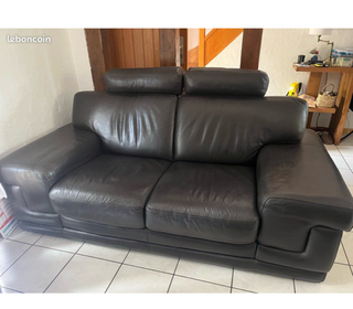 Canapé cuir vachette 2 places couleur chocolat excellent état . avec repose tête (têtière) amovible (L196 x H 78 x P 101