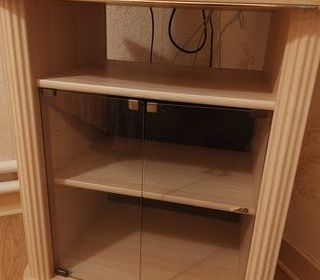 Buffet salon blanc et beige, 2portes et 3 tiroirs