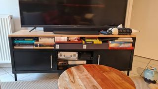 Meuble tv à vendre En très bon état Espace de rangement sur les deux côtés. A venir récupérer sur place Paiement espèces uniquement.