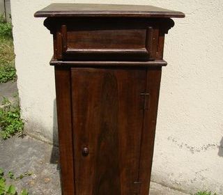 Ancienne table de chevet / de nuit - Epoque 1900 Table de chevet rustique à pieds tournés 1 tiroir et 1 étagère intérieure Dimensions: Hauteur: 75,5 cm Largeur: 28,5 cm