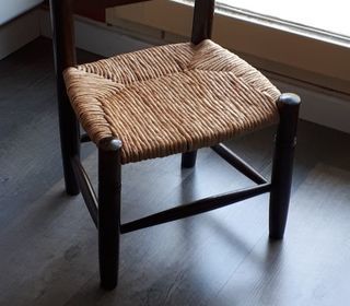 A VENDRE PETITE CHAISE D'ENFANT Bois marron foncé et paille Hauteur totale 57cm ? Dimensions assisse 31 larg x 28 prof Hauteur assise 28cm ETAT NEUF A prendre et payer sur p