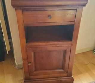 Je vends un meuble en bois massif, en très bon état, solide et de belle qualité. Dimensions : L 97 cm x P 60 cm x H 93 cm. Composition : 2 portes + 1 tiroir avec espace de rangem