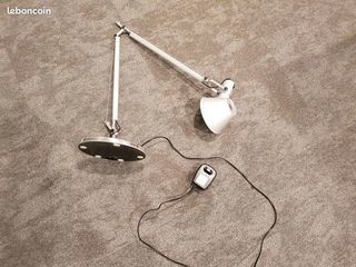 Lampe Artemide Tolomeo avec Base en Aluminium design tres bon etat fonctionne parfaitement La base et la structure à bras articulés sont en aluminium poli Dimensions 120 cm pli