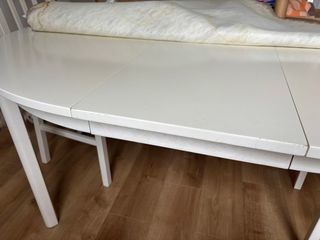 Table ovale bois blanc 2 rallonges,6 chaises bois blanc bon état