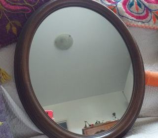 Miroir en bois ovale moderne. Décoration d'intérieur rétro vintage es années 80. Bon état, idéal pour ajouter une touche vintage à votre intérieur. Hauteur 0,59 largeur 0,48.