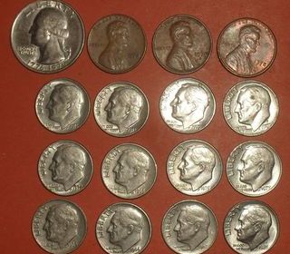 Lot de 16 Pièces de Monnaies USA. En bon état. -1 Quarter Dollar 1976. Pour le bicentenaire de G. Washington durant la guerre d'Indépendance. - 3 pièces One Cent: 1972, 1974,19