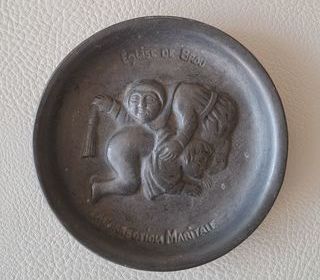 ramasse monnaie coupelle objet de curiosité en métal la correction maritale il s'agit d'un reproduction d'une sculpture que l'on trouvesur une stelle de l'église de Brou à Bourg