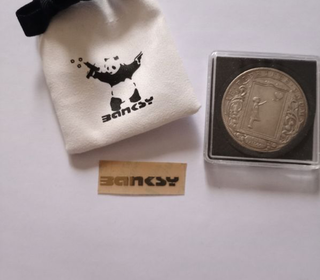 Pièce de monnaie USA reproduction Banksy Fourni avec Un écrin en suédine avec le panda Une capsule de protection forme carré A l'intérieur une mousse noir Un mini