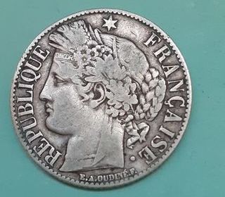 Rare Pièce de monnaie " 1 Franc Cérès, IIIe République de 1871. Atelier de Bordeaux, Métal : Argent , diamètre 23 mm.