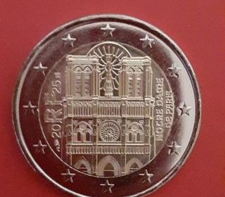 Pièce commémorative 2 euros 2025 1er anniversaire de la réouverture de la cathédrale Notre Dame de Paris.