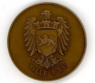 Splendide médaille frappée par la Monnaie de Paris Armoiries de la Ville Royale d'EU (76260) Dia 50mm ep 4,5mm poids 68g Métal de cloche Port offert