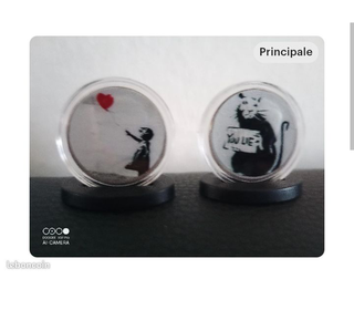 Lot de deux pièces de monnaie Alf dollars Une avec la petite fille au ballon rouge Une avec le rat Banksy Chaque pièce à un certificat avec une capsule de protection et