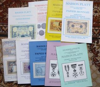 je vend par lot catalogues annees 90 /2000 en TRES BON ETAT sur billets monnaies antiques royales medailles etc nombreuses photos et descriptions PO