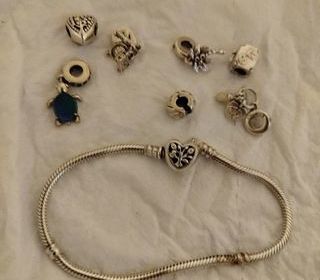 Très beau bracelet Pandora avec 6 charm et un fermoir en argent très beau bracelet pour un cadeau de Noël.prix 230e .et la bague vancaro t 57 58. Prix 70e .