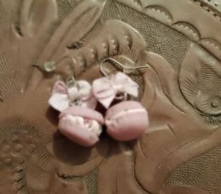 ces boucles d'oreilles macarons roses sur métal argenté sont en très bon état. pour enfants .