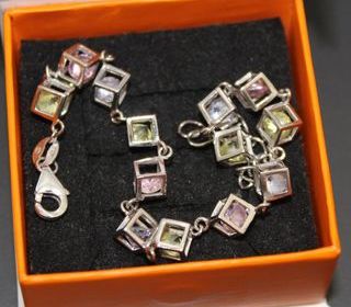 Bracelet argent 925 et oxydes de zirconium teintés roses, réglable