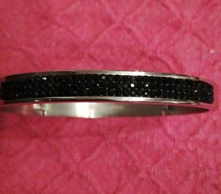 bracelet femme rigide cristaux noirs magnifique! acier inoxydable stainless steel 6,3 cm X 5,4 cm X 0,7 cm La fermeture fonctionne Voir photos. TRÈS BON ÉT