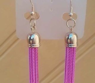 Boucles d'oreilles longues pendantes... Bijoux fantaisie pour femme avec un design élégant * Faites en Métal Doré et Pompons coloris Rose * Type de fermoir?: Crochets * Hauteu