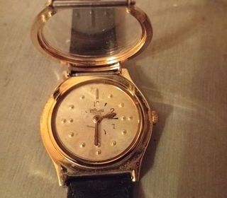 Vends une montre en plaqué or avec un cadran qui s'ouvre par le bas pour lire l'heure en braille destinée aux non-voyants. Montée à la main en atelier, marque Arsan, horloger Suiss