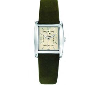 montre la rectangle pour femme made in France et son bracelet cuir de couleur marque menthe à l'eau Boîtier métal brillant finition chromée : 23,3 x 29,1 mm (dame) -