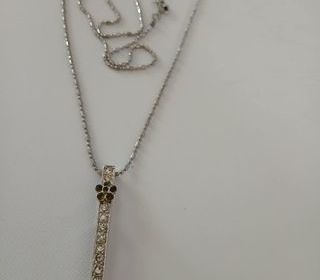 Pendentif bleu et or, avec sa chaîne. Neuf dans son emballage d'origine. Je pense que c'est un bijou plaqué or, avec un quartz bleu ou bien une céramique bleue. Je ne peux pas dé