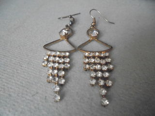 boucles d' oreilles en métal doré et trass transparentes , 5 cm de haut