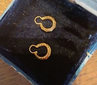 Or 18 carats. 2 perles. Poids 1,567 g. Taille 49 ou 50. Pas de livraison venir à mon domicile et paiement en espèces.