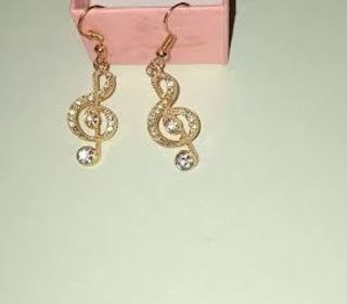 Boucle d'oreilles clé de sol dorées avec strass brillant Neuf sans étiquette État Neuf sans étiquette Matière Acier Couleur Doré Elégant boucle d'oreilles en forme de c