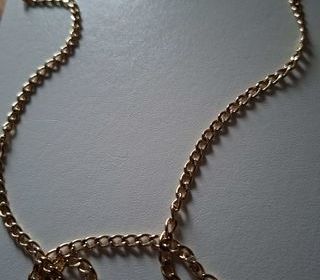 Parure jamais portée . Plaquée or et 24 zirconium .Boucles d'oreilles double cà ..."ur, plaquées or et zirconium . Chaîne plaquée or réglable de 41 à 44 cm. Avec pendentif ron
