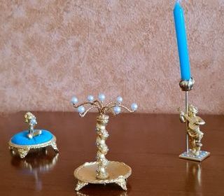 Très bonne idée cadeau ou tout simplement pour se faire plaisir !.... Ce porte bijoux est accompagné de deux jolies pièces décoratives, ornées de perles blanches et turquoises. P