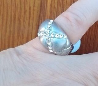 Jolie bague boule fantaisie... en Taille Size 17 * Matière - Au dessus : Métal Gris... Ornée de strass - Au dessous : Argenté * Neuve, jamais portée, etc... Voir les Phot