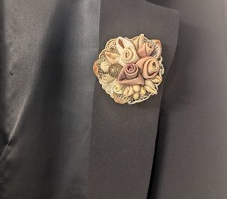 Broche originale tissus coquillages.peu courante .faite par une créatrice