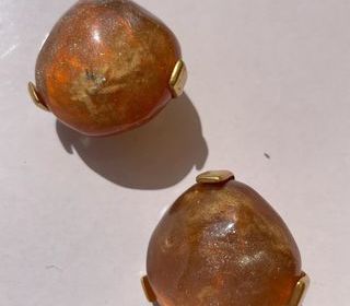 Magnifique BO Clip dorée résine orange irisé Siglée ANTIGONA Dim 3.5 x 3,5 cm env vintage année 90 Parfait état Je vends aussi des d'autres bijoux de la même marque + C.LACRO