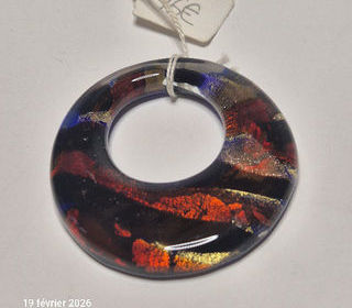Perle en verre de Venise de Murano, avec inclusion de feuille d'or Ses couleurs sont rouge, or, cuivre, et un peu de bleu royale Son diamètre est de 5 cm et
